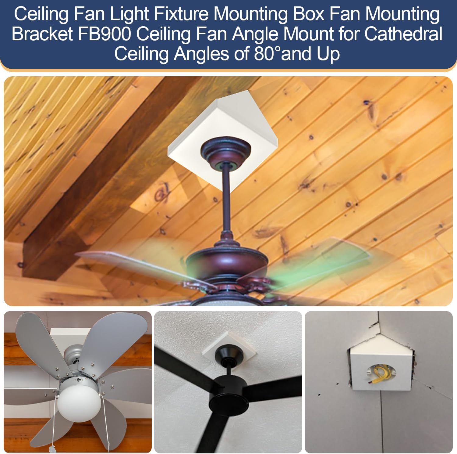 Ceiling Fan Light Fixture Mounting Box Fan Mounting Bracket FB900 Ceiling Fan Angle Mount for Cathedral Ceiling Angles of 80°and Up with Metal Bracket