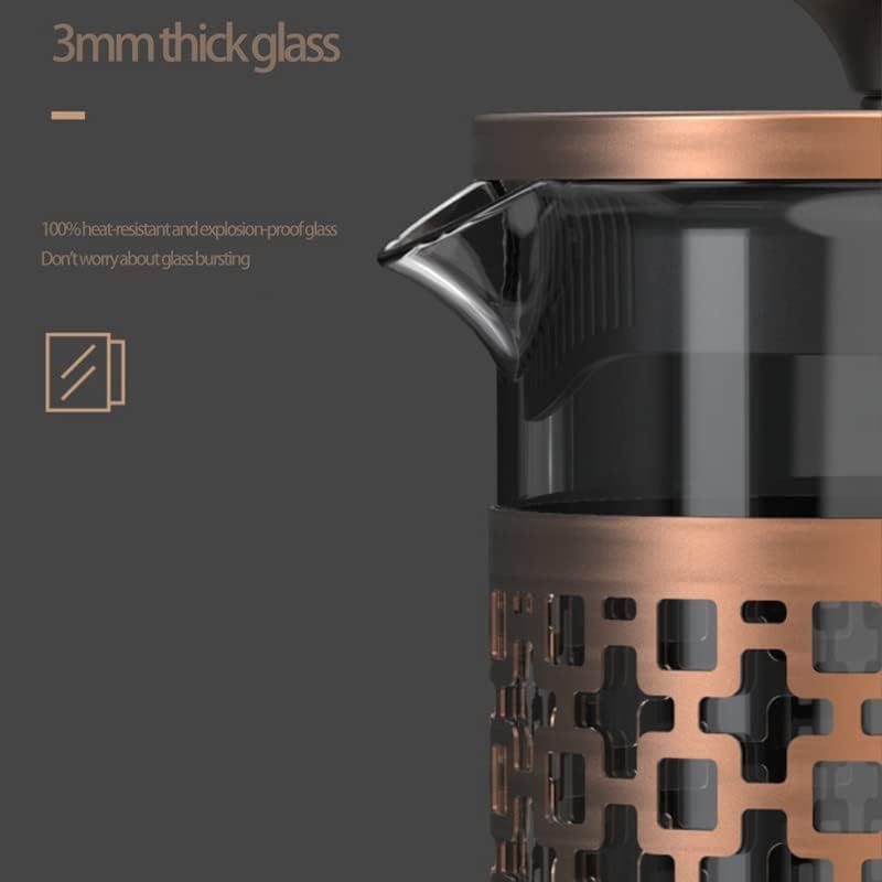 EDCWDTYYECName: coffee makerCombination: Kettle + Filter Screen + LidGlass: 3mm thickWithstand temperature difference: -20 to 150Capacity: 1000ML Uses: espresso, filtered coffee, coffee, water, scented tea, green tea, black tea, Pu-erh tea, craft scented tea, fruit tea, hand-made tea pot,etc.Occasion: home, bar, western restaurant, coffee shop, milk tea shop,etc.colour: black/bronzeMaterial: glass + stainless steelsize: 230x166x123.5mmPackage Contentslour: bronzeMaterial: glass + stainless steelsize: 230x166x123.5mmPackage Contents:1 x kettle1 x filter cover1 x multilingual instructionsOnly the above package content, other products are not included.Note: Light shooting and different displays may cause the color of the item in the picture a little different from the real thing. The measurement allowed error is +/- 1-3cm.Scope of use: cafes, bars, restaurants, lounge bars.
