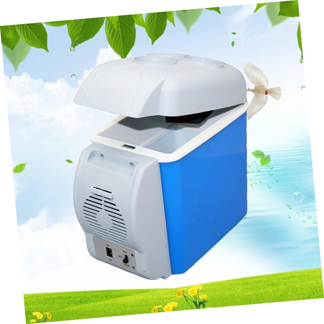 Package Include 1 Cool Warmer Features - Temperature: 20 Celsius degree lower than environment temperature, can be as low as 5 Celsius degree auto Refrigerator - Material: Plastic and metal car heater cooler - Volume: 7.5L outdoor refrigerator - Size: About 32.5 x 30 x 20.5cm - Voltage: 12V - Color: Blue - Low power consumption, design and small size, easy to carry car freezer. - Can be used to store drinks, vegetable, fruits, tea leaves, make-up, medicine, and etc mini freezer. - Cup holder on the top, easy to hold bottle and can. - Suitable for car, SUV, , minivan and other 12V vehicle. - 1 cooler warmer fridge.Goods Descriptionmini freezer This item is a 1 car cooler warmer fridge.auto Refrigerator It is low power consumption, design and small size, easy to carry.car heater cooler It can be used to store drinks, vegetable, fruits, tea leaves, make-up, medicine, and etc.outdoor refrigerator Suitable for car, SUV, , minivan and other 12V vehicle
